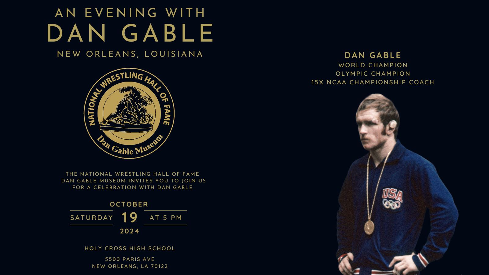 The National Wrestling Hall of Fame Dan Gable Museum is excited to announce that it will be hosting “An Evening with Dan Gable” on Saturday, October 19, 2024 at Holy Cross High School in New Orleans.