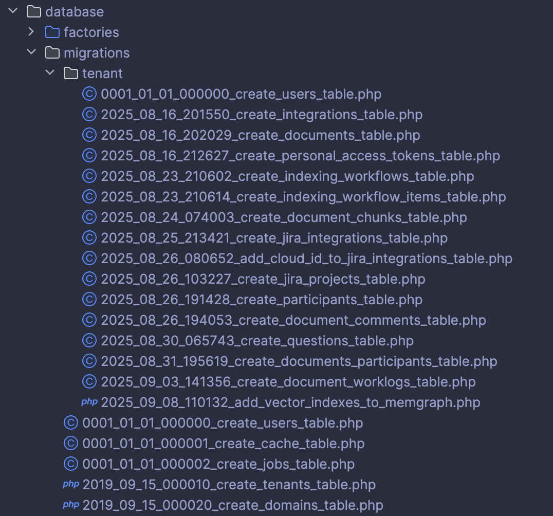 You need to separate your migrations. Tenant-related migrations go into a dedicated “tenant” folder: