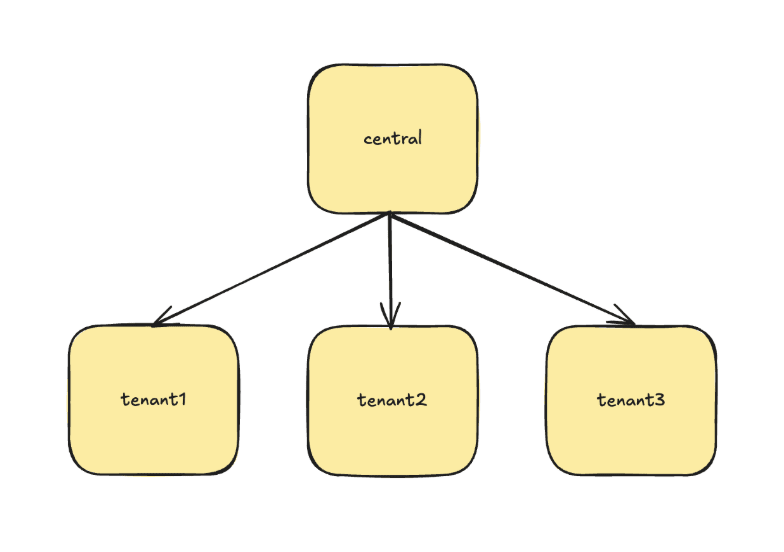 The central database contains data that is not tenant-related. This data belongs to the application. For example, a list of tenants with database connection information (such as the databases for “Company XYZ” is called “tenant-1234” etc).