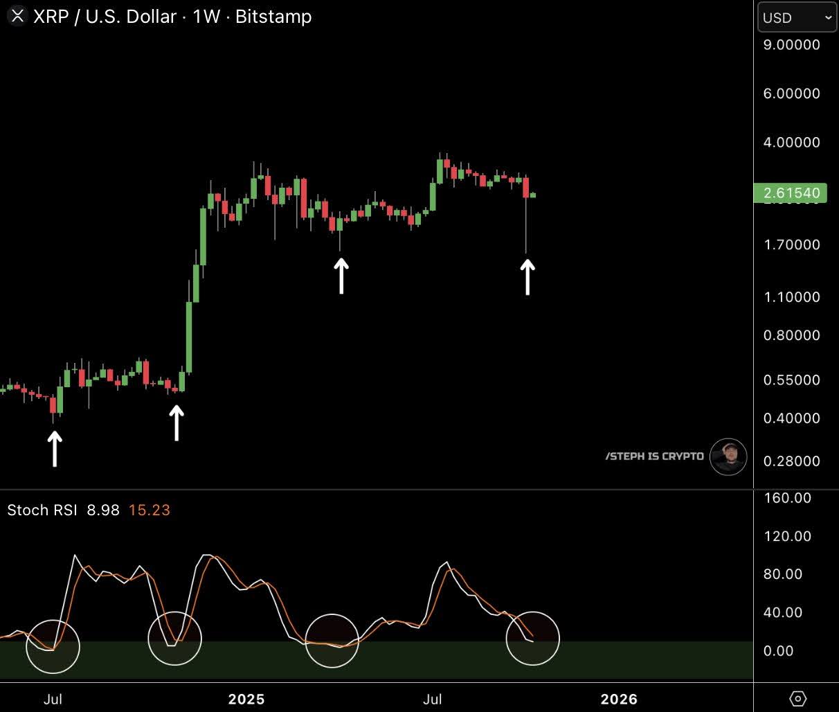 According to analyst Steph Is Crypto, XRP might be setting up for a rebound after weeks of turbulence.