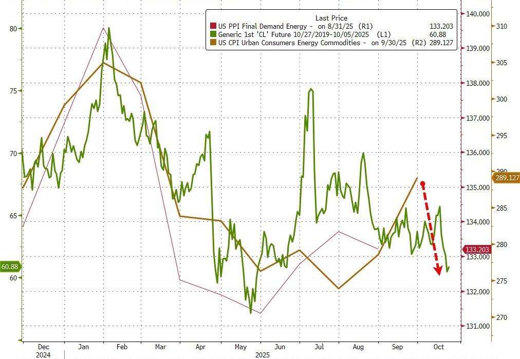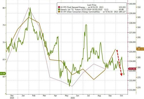 A similar pattern was seen in Core CPI data with the print rising 0.2% MoM (below expectations of +0.3%), but pulled the YoY print down to 3.0% (down from 3.1% in August), the lowest since June…