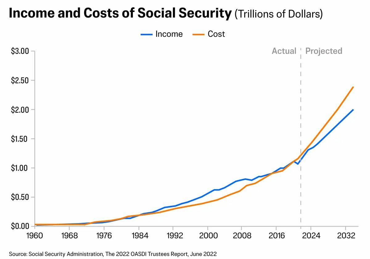 Economists and the Social Security Administration have warned for years that more beneficiaries and fewer people paying into the program will make it insolvent. The Peter G. Peterson Foundation, in a 2022 report, stated that by 2034, Social Security costs will exceed Social Security revenue to the tune of $437 billion.