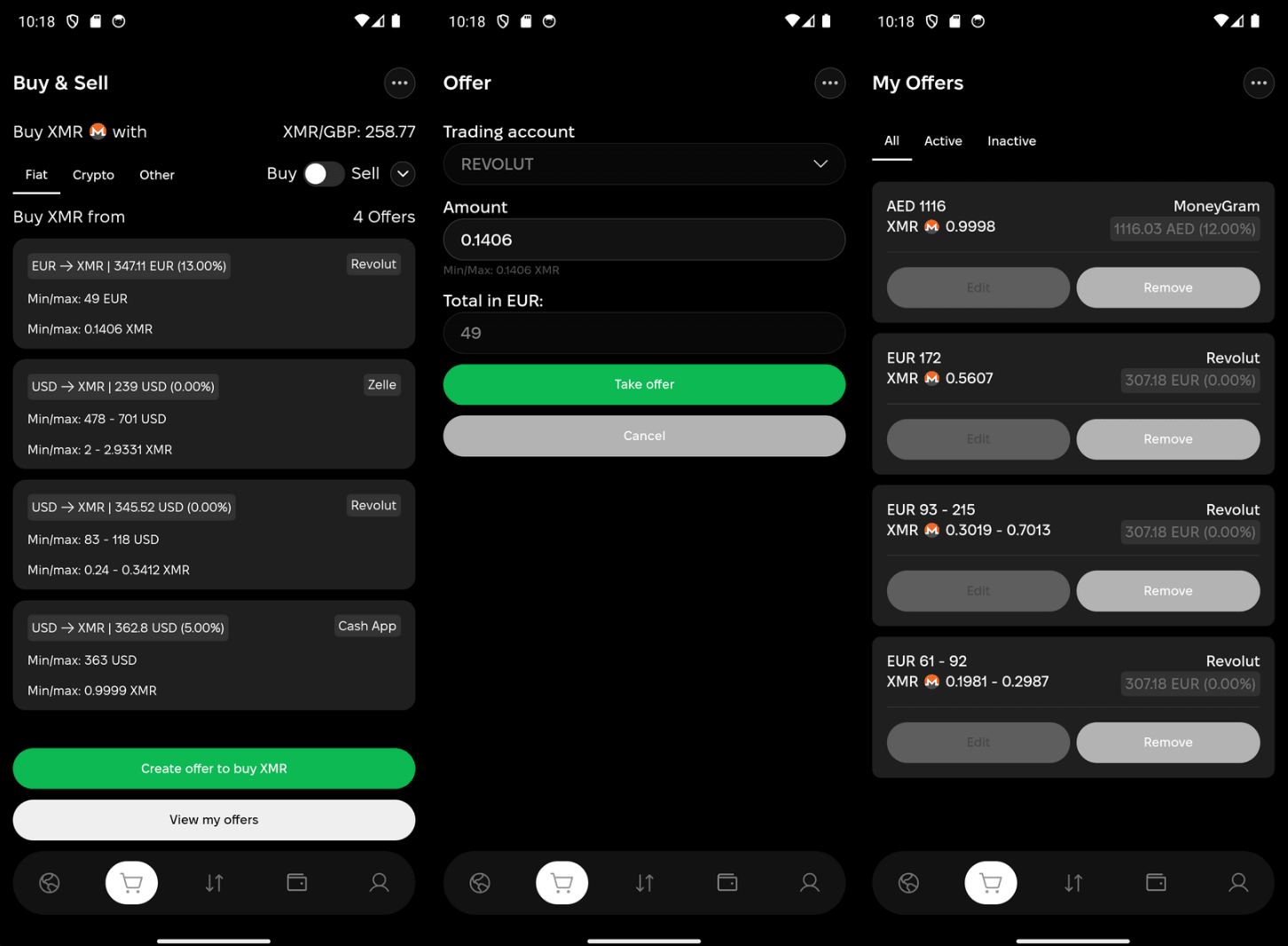 atsamd21 has released Haveno Android app v0.4.11.0, a mobile version of the decentralized Monero exchange built with Qt and C++. The app connects users over Tor to manage Haveno multisig trading and can run in standalone mode with a built-in daemon or through a remote node. This version adds several fixes and updates including improved offer handling, market price display, and network operator instructions. The app currently supports Android only, though future iOS support via remote node is possible. It remains configured for stagenet, and not endorsed by the Haveno core team, so users should avoid mainnet trades and are encouraged to help by testing, reporting bugs, or donating to support further development. More info here.