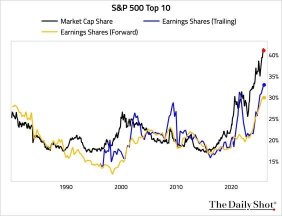 However, adding to that concern is the continued fact that the market remains extremely narrow. Gains have concentrated heavily among a small group of high-growth companies with strong ties to AI and technology. If optimism around AI, tech investment, or “transformational technology” cracks, even slightly, whether due to earnings disappointments, regulatory headwinds, or shifting investor sentiment, the broader market could struggle. The narrow leadership leaves little margin for broader weakness, and given that the vast majority of earnings growth has come from a handful of companies, it suggests that “disappointment risk” could be a significant factor next year.