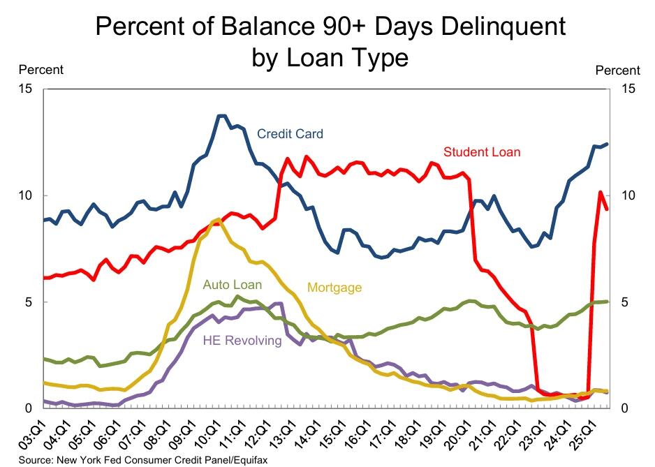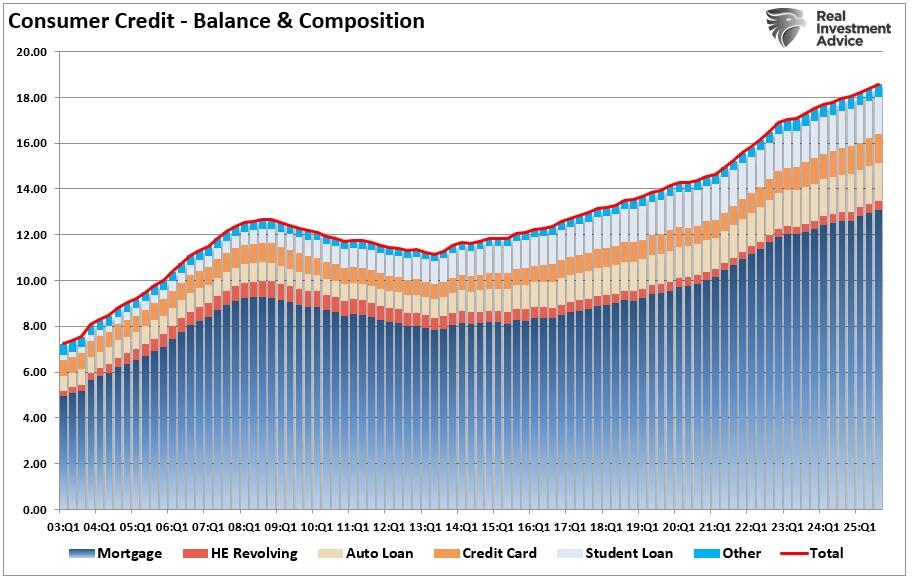 Furthermore, on the consumer side, while household debt rose modestly in Q3, overall borrowing increased in a controlled way. Total U.S. household debt reached about $18.59 trillion as of Q3 2025, a 1 percent increase over the prior quarter and up about $642 billion year‑over‑year. That rise was reflected in mortgages, credit cards, student loans, HELOCs, and auto loans. Notably, mortgage balances alone rose by $137 billion, bringing the total mortgages to $13.07 trillion.