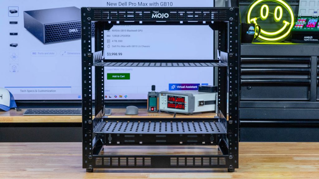 We take a look at the Techmojo 12U open frame rack that comes with multiple shelves for mounting all kinds of gear