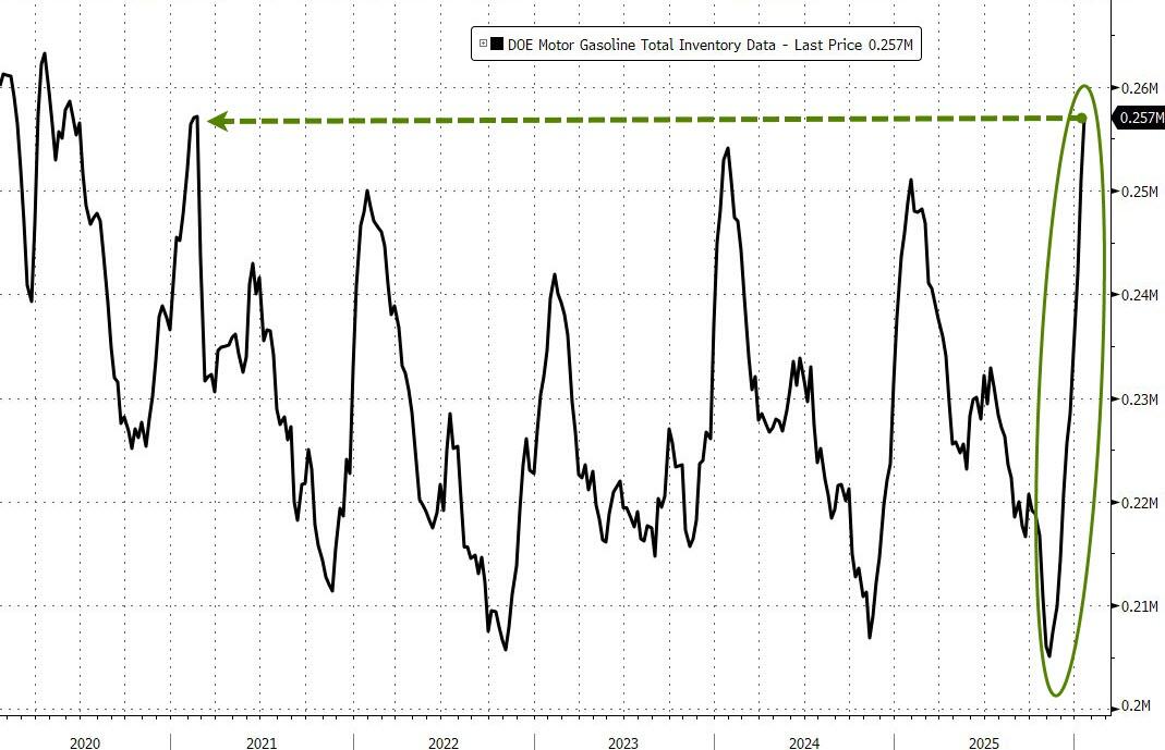 Gasoline inventories are now at the highest level since 2021 and the highest seasonal level since 2020. This comes as demand plummeted to the lowest weekly level since January 2023. East Coast gasoline stocks posted their largest weekly move since the end of 2021.