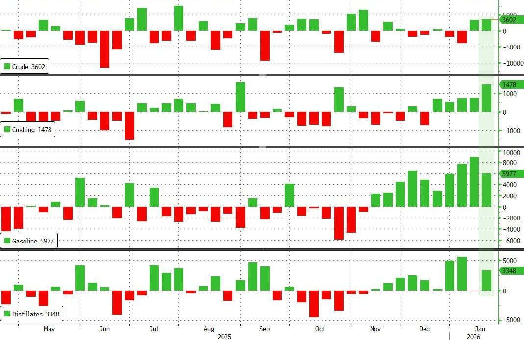 The official data showed inventory builds across the board with Cushing stocks jumping by the most since August and gasoline inventories up for the 10th week in a row
