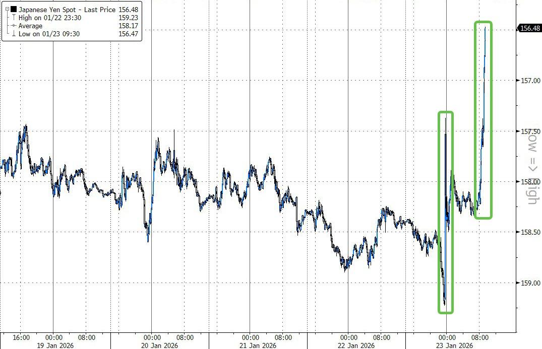 Around 2amET, as Bank of Japan Governor Kazuo Ueda ended his post-policy decision press conference, with JPY weakness accelerating above 159/USD (near the 160 Maginot Line), there was a sudden and very violent lurch higher in the yen (USDJPY puked 150pips in minutes)…
