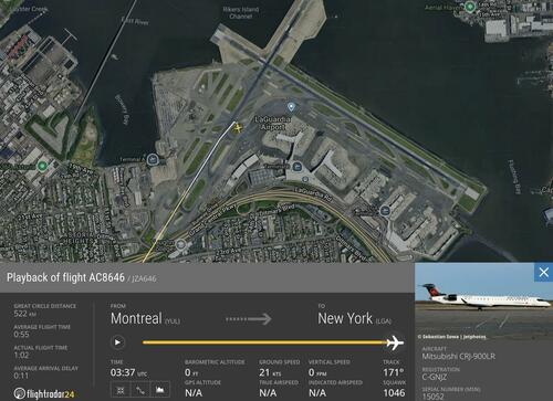 FlightRadar24 shows that Flight AC8646’s groundspeed was around 24 mph at the time of the incident.