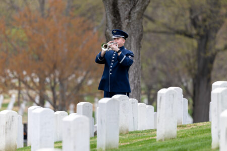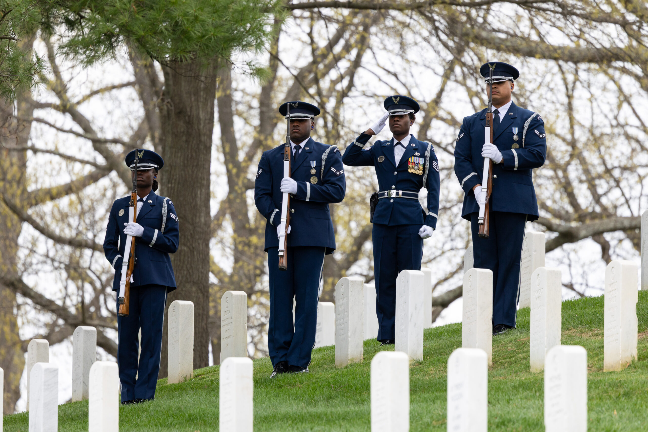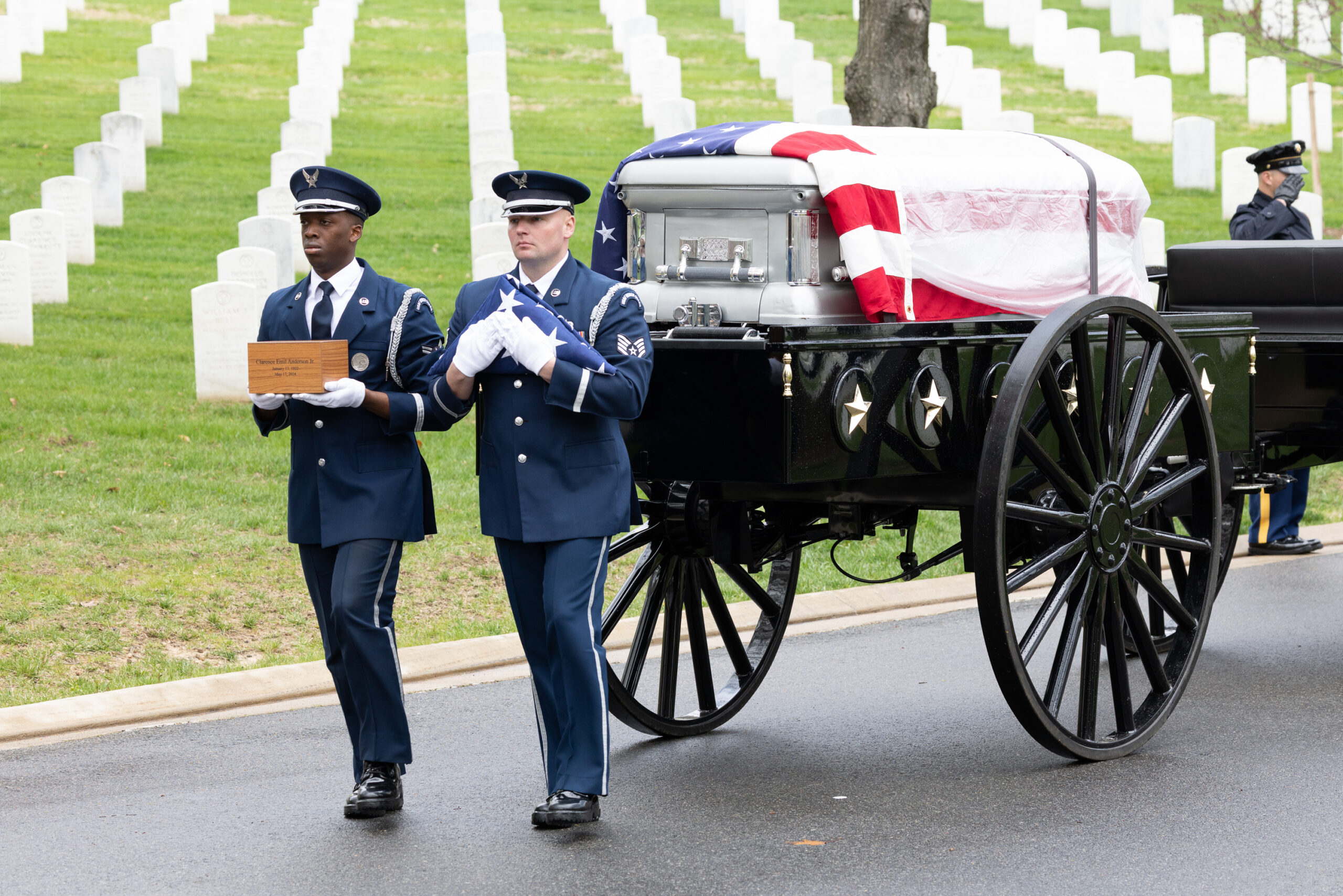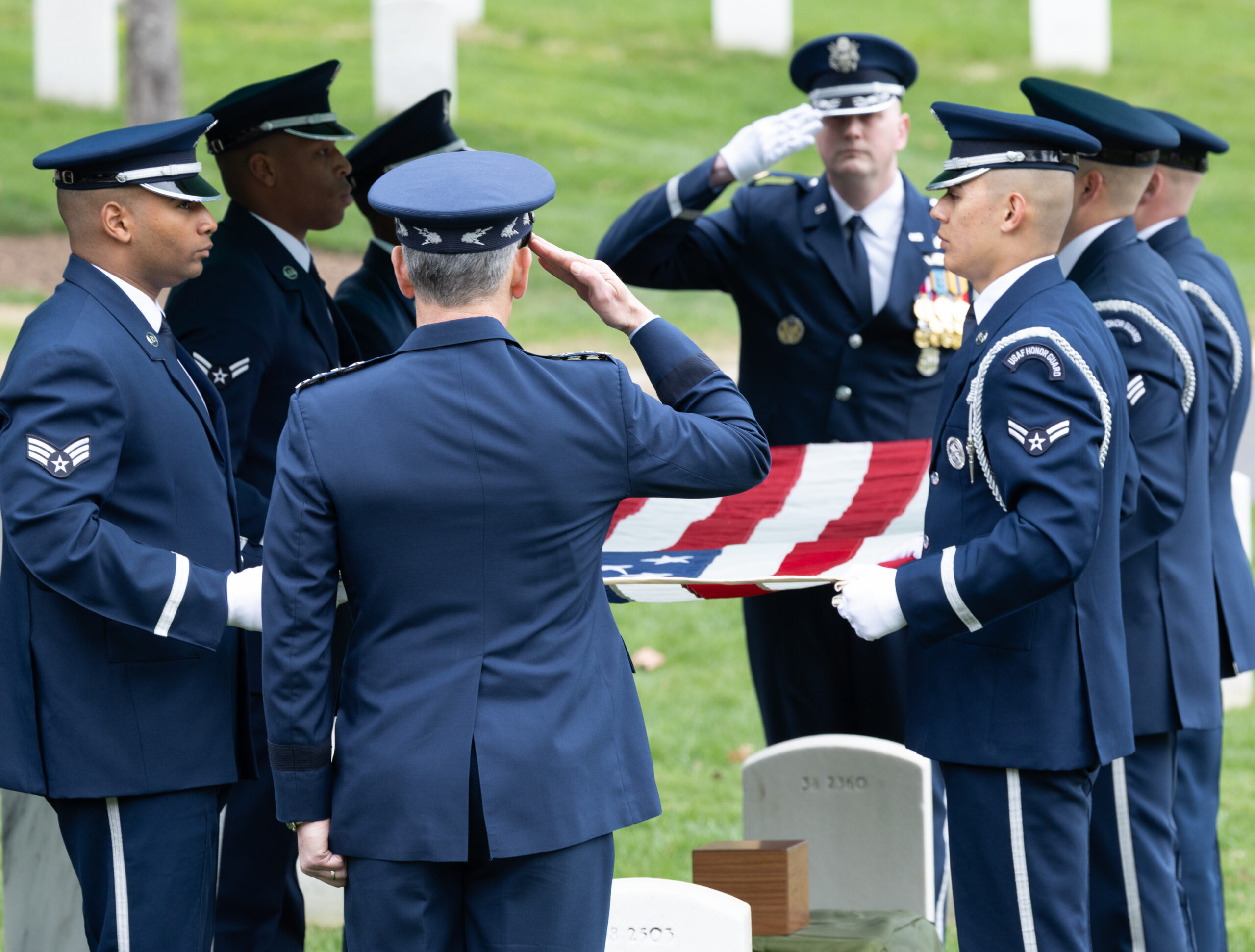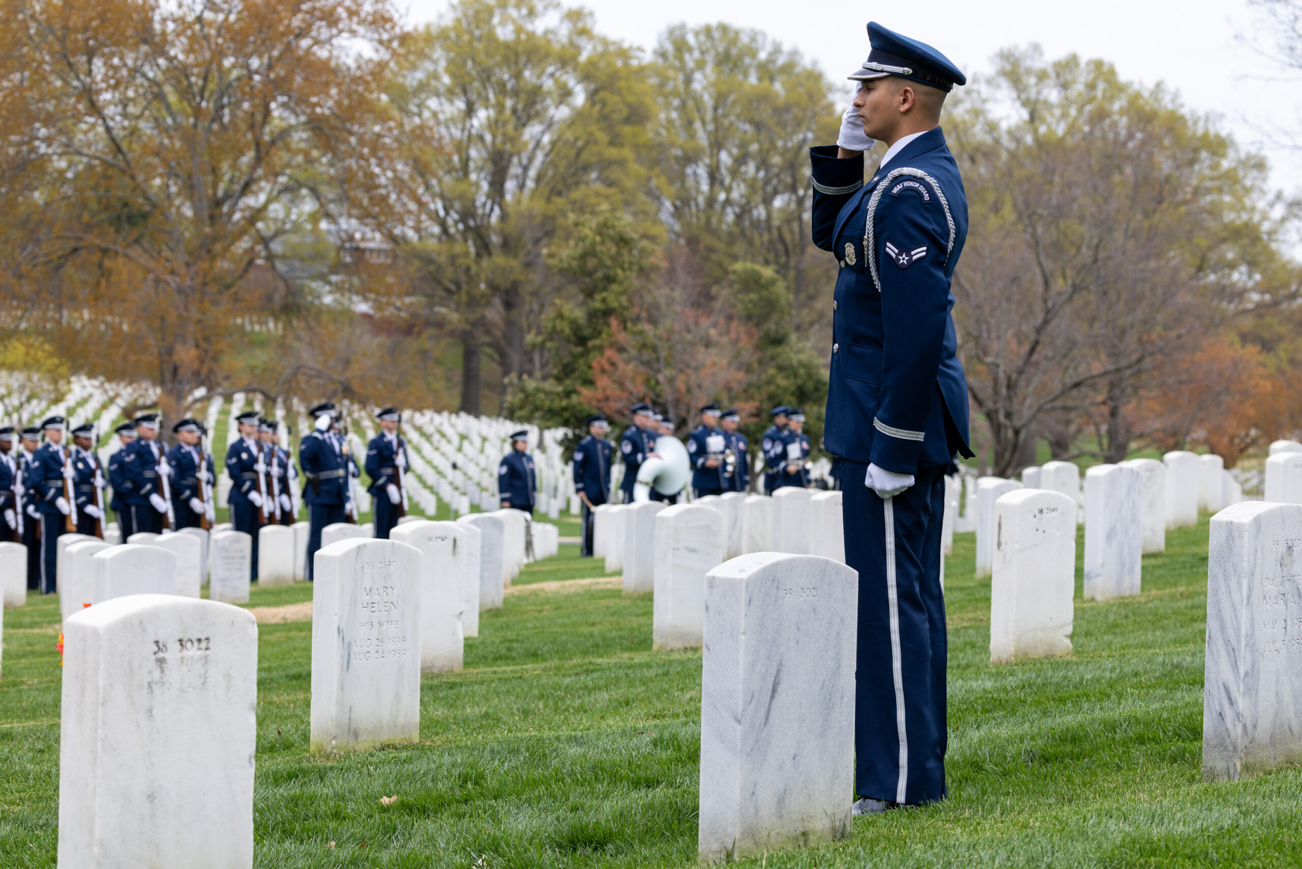 ARLINGTON NATIONAL CEMETERY, Va.—Brig. Gen. Clarence E. “Bud” Anderson, the last surviving triple ace from World War II, was honored one last time by the nation’s top Airmen when he was buried here with full military honors March 30.